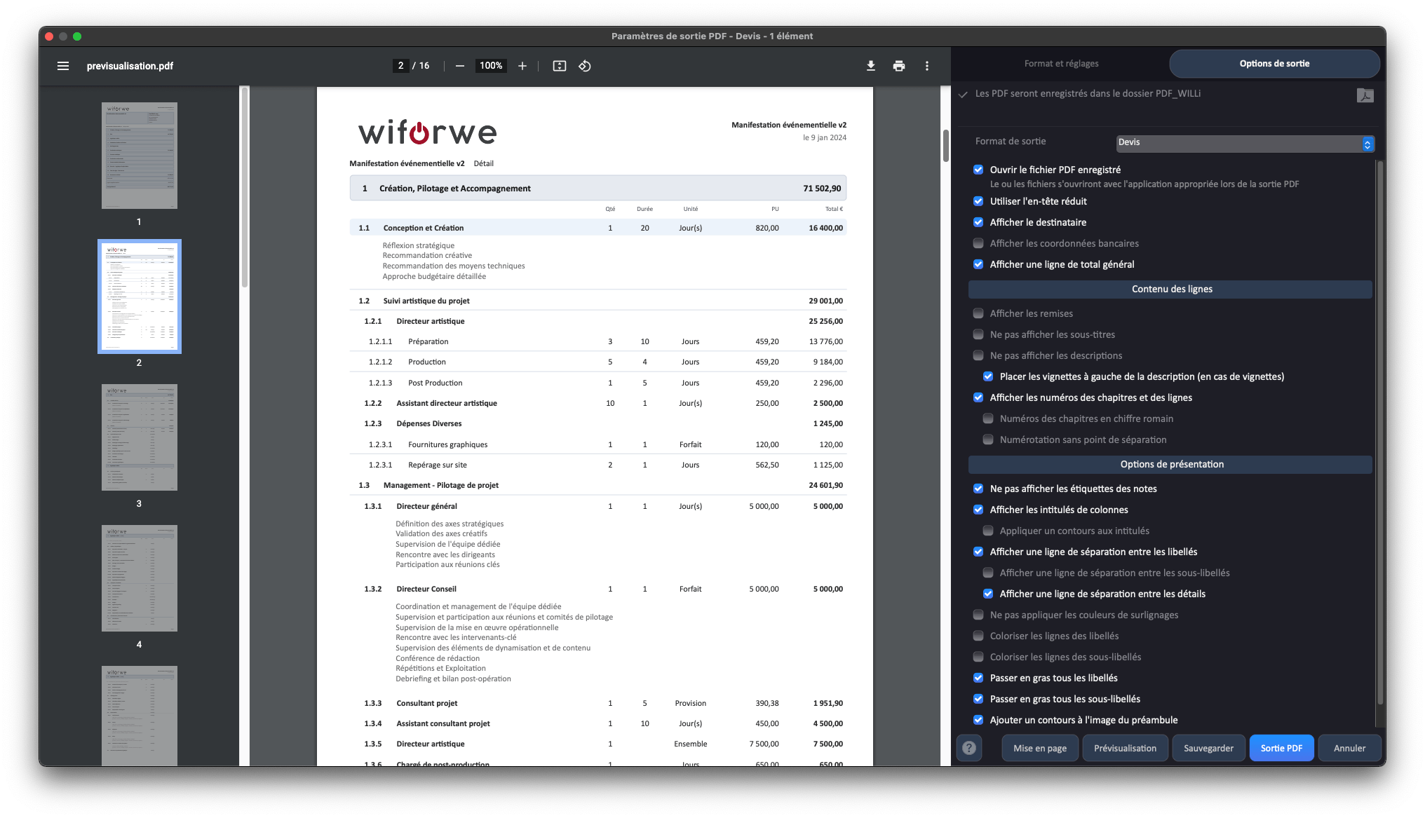 chiffrages sur 4 niveaux • multi-devises • feuilles de marge • analytiques