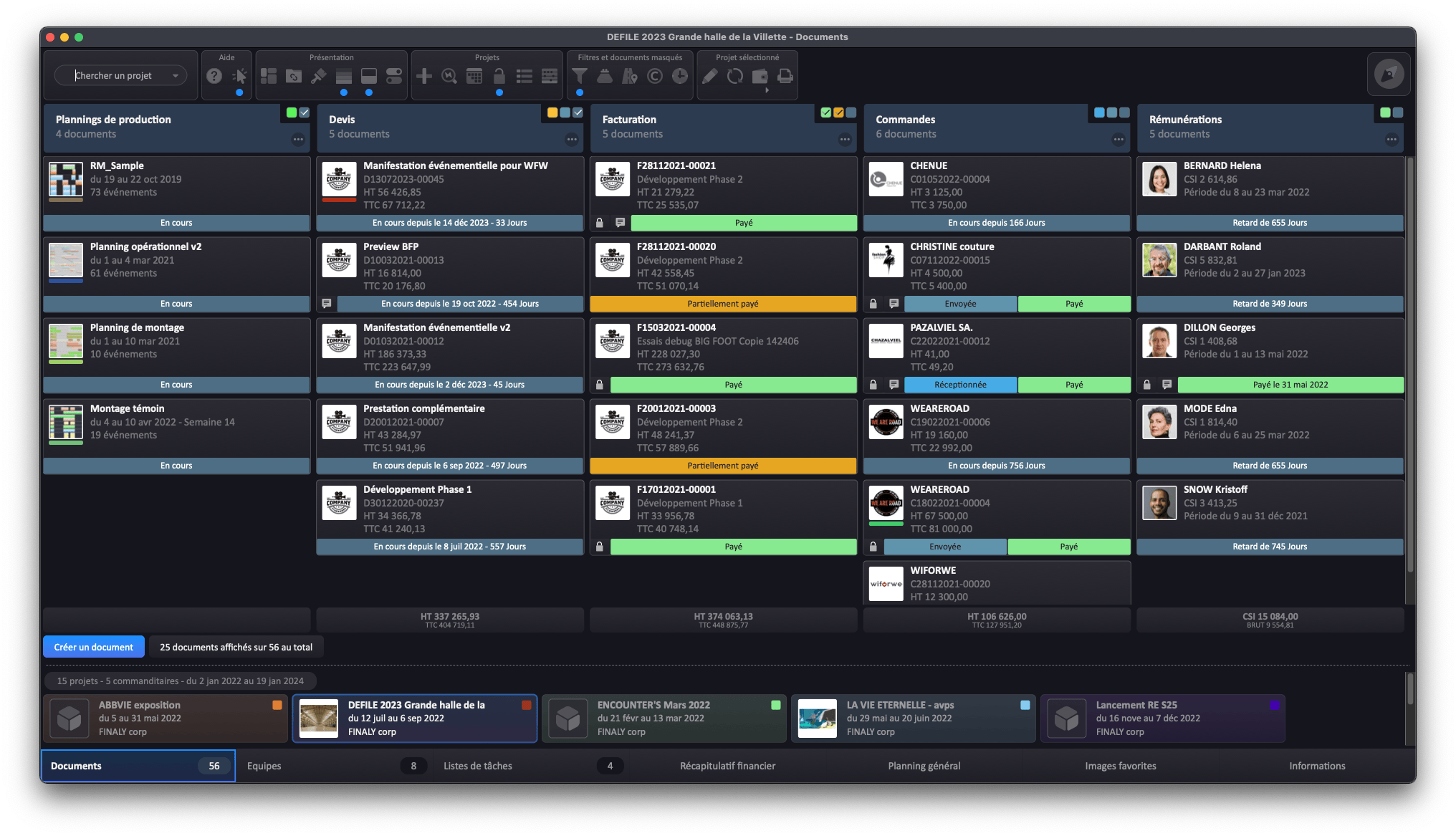factures • relances • commandes • rémunérations • pointages horaires • frais • indemnités km • droits d'auteur